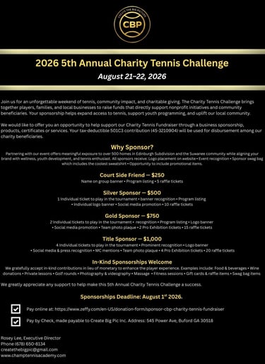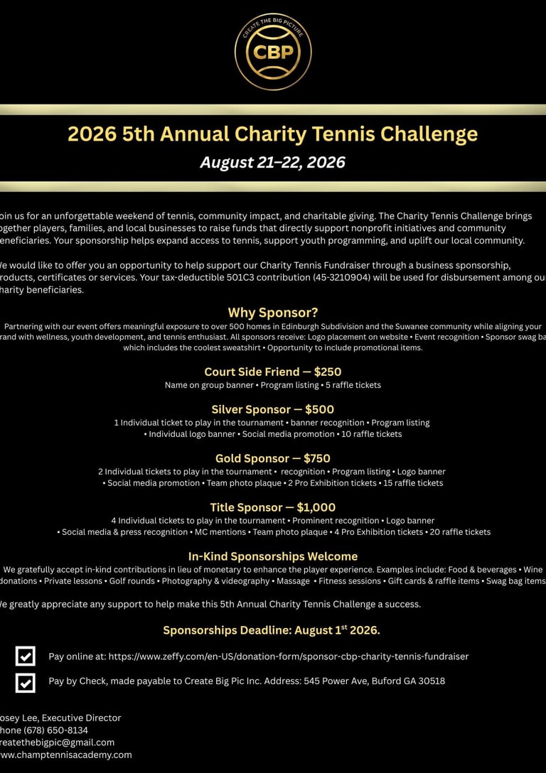 Create Big Pic Inc. opens doors for underprivileged kids to enjoy tennis and pickleball, supporting several impactful charities along the way.